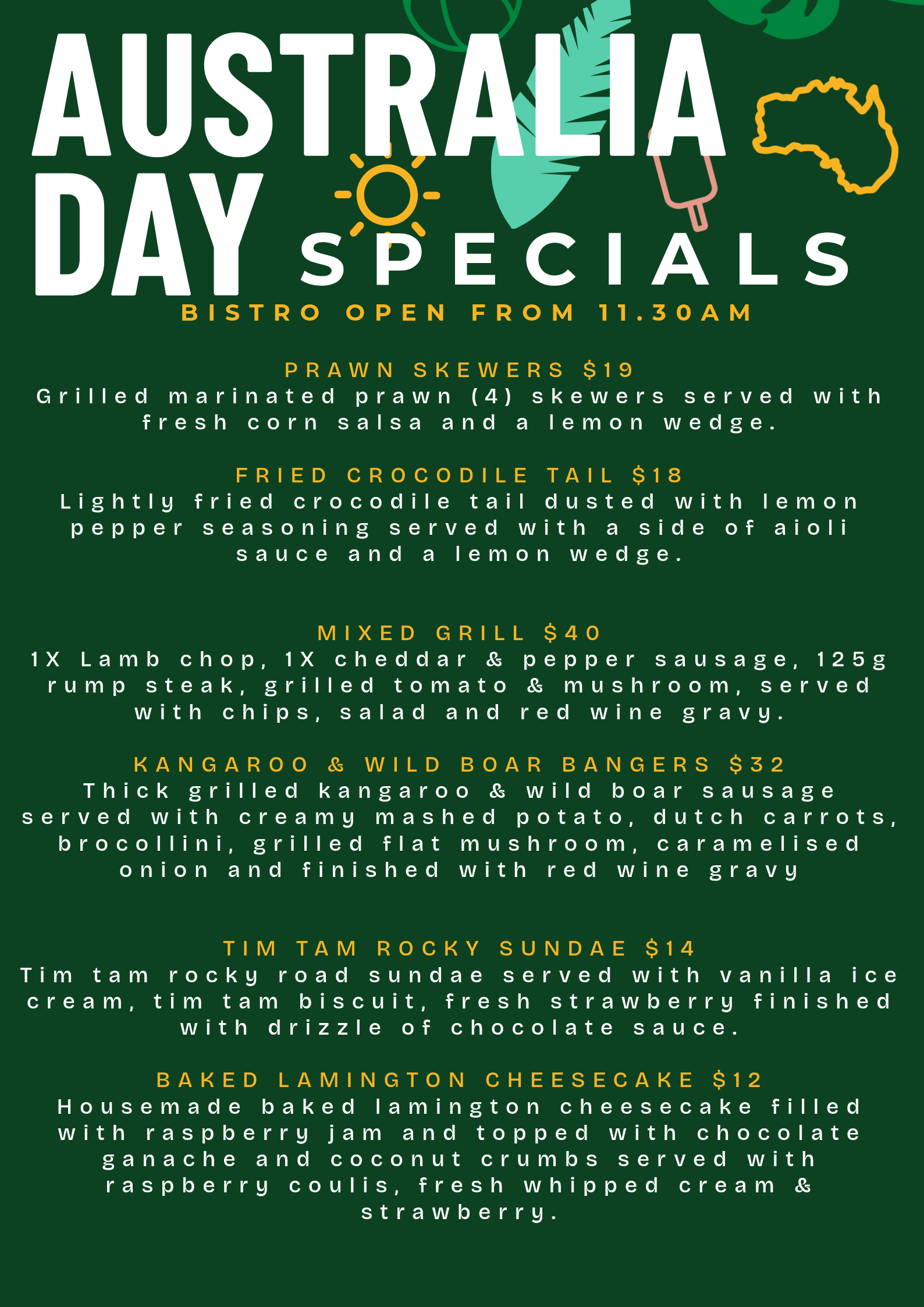 Celebrate Australia Day at Beerwah Hotel with a relaxed, no-fuss menu made for sharing and enjoying together. Featuring familiar favourites and easy crowd-pleasers, it’s the perfect excuse to gather with friends, enjoy good food, and soak up the holiday atmosphere